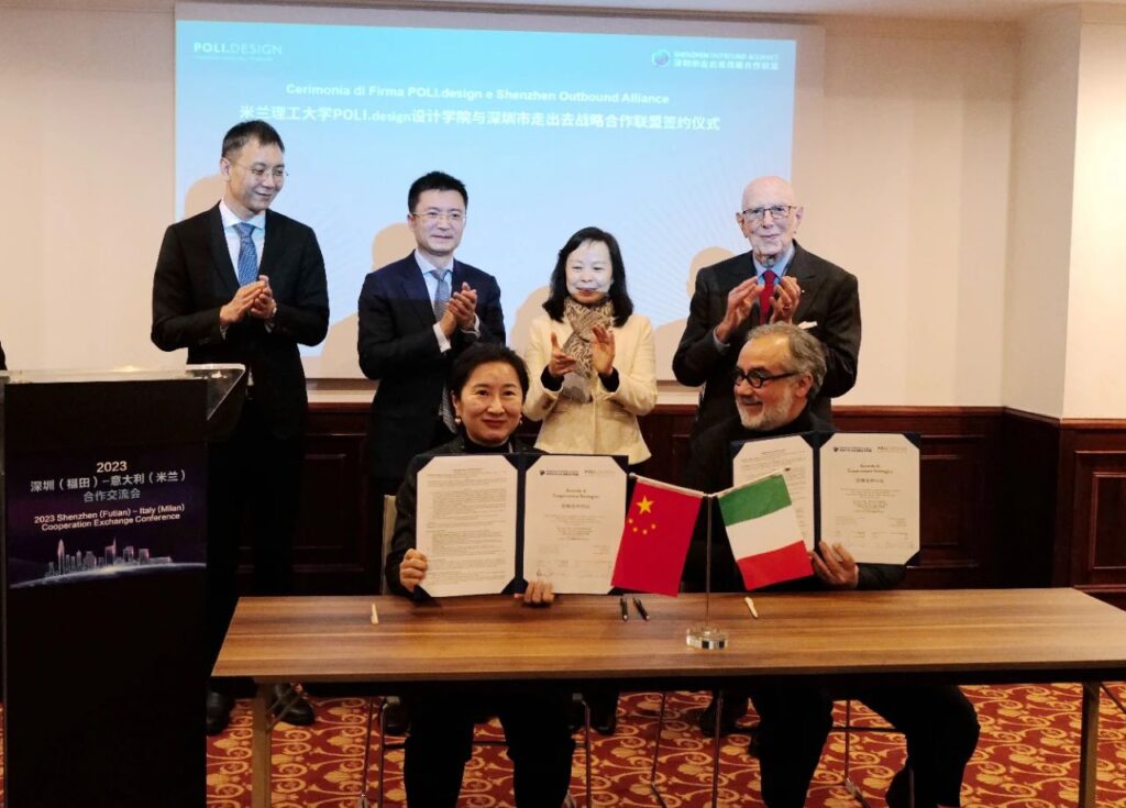In occasione di questo evento di scambio, la Shenzhen Outbound Alliance (SOA) ha firmato un memorandum di cooperazione con la Scuola POLI.design. Le due parti hanno deciso di promuovere la creazione di un centro di innovazione della moda a Futian da parte della POLI.design School del Politecnico di Milano; di costruire congiuntamente una piattaforma di istruzione della moda di livello mondiale; di rafforzare ulteriormente la formazione dei talenti della moda; di potenziare i marchi e le imprese della moda e di promuovere la cooperazione tra il distretto di Futian e Milano. L’industria della moda ha portato avanti una cooperazione approfondita e a lungo termine.