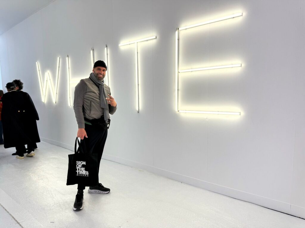 Al White gli incontri si moltiplicano. Stand, brand, designer, imprenditori: visioni che si affacciano, linguaggi che si intrecciano, identità che cercano spazio e dialogo. L’imbarazzo della scelta è reale, quasi vertiginoso.