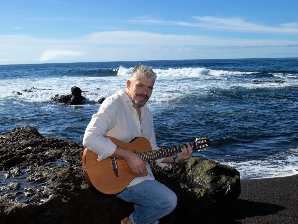 Qui ho trovato la mia casa e una terra che mi ha saputo accogliere nel migliore dei modi. Ho fatto la mia casa e con mia moglie, il mio nido. Tenerife è la mia Atlantide; mi ha permesso di realizzare i miei sogni, trasformando la mia passione in mestiere. Il clima mite e isolano mi permette di vivere di musica, grazie al tempo buono che c’è quasi tutto l’anno. Ritmi diversi e una pace che mi aiuta a vivere meglio. Mentre siamo al telefono vedo i delfini saltare gioiosi. Sono affacciato su una parte di oceano molto profonda che mi regala ogni giorno delle emozioni incredibili, con i soffi delle balene o il canto dei delfini. Spero di poter portare la mia musica ancora in Italia. Questa rimane il mio amato paese, dove spero di poter far sentire la mia voce.