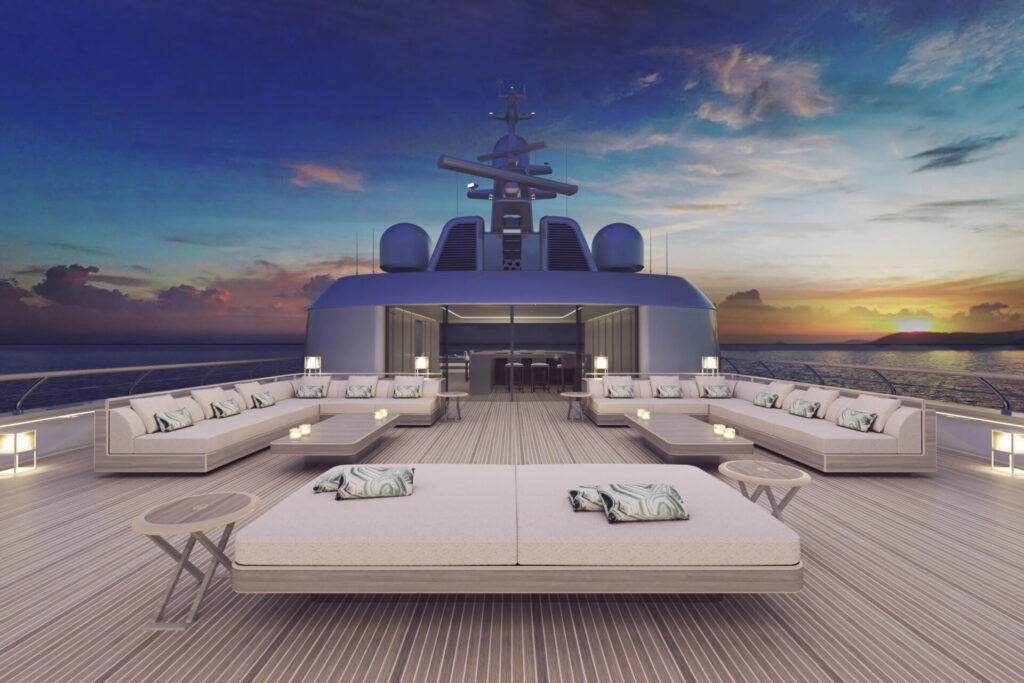 Custom builds, materiali naturali e, soprattutto, spazio. Flusso continuo tra interno ed esterno, ponti e aree living che si fondono. Balconi, terrazze, saloni all’aperto, cabine trasformabili — non si tratta più di farsi vedere, ma di sentirsi liberi.